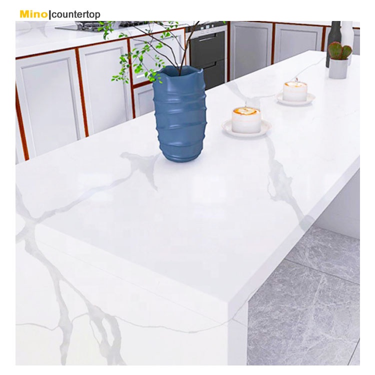 인공 주방 섬 직사각형 테이블 조리대 슬래브 Calacatta 화이트 엔지니어링 석영 석재 슬래브 카운터 탑
