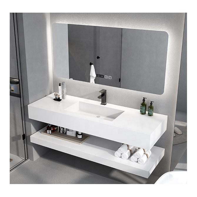 공장 사용 화이트 화강암 아크릴 통합 더블 현대 벤치 카운터 탑 욕실 세라믹 허영 탑